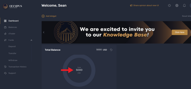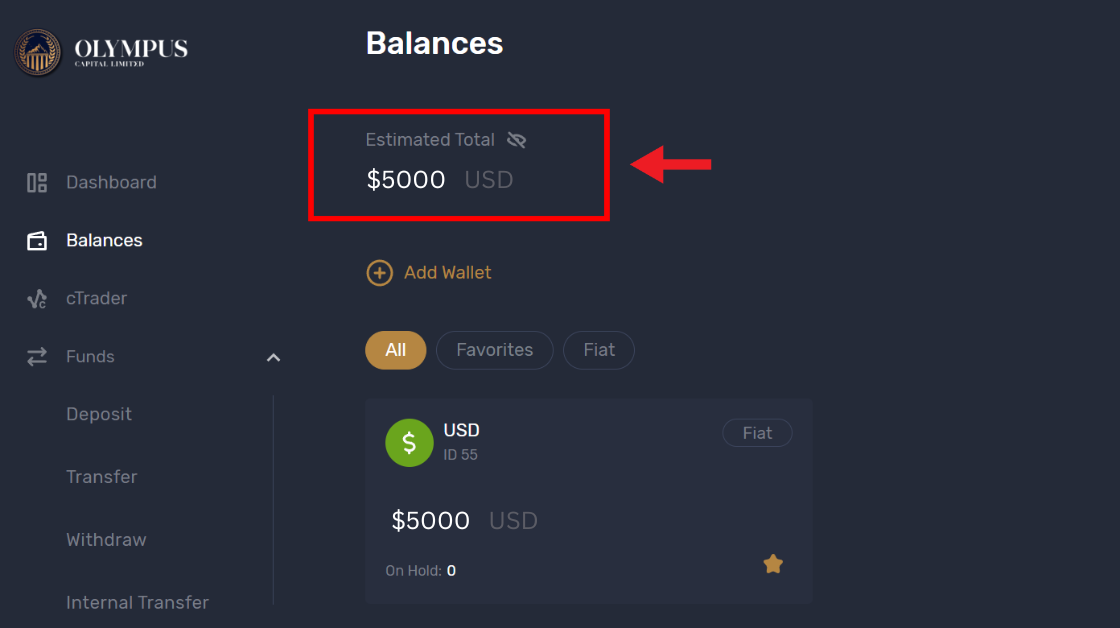 7. Once your funds have arrived they will show under the Balances tab and on the dashboard.